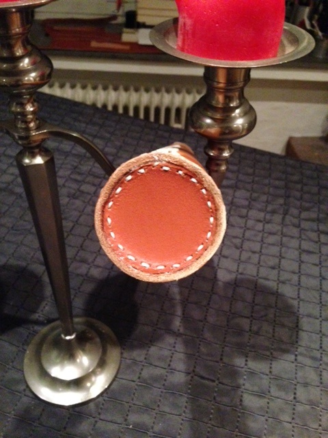 das Spiralmuster vom Faden zurück da der sich schön in das nasse Leder geprägt hat. Nach dem trocknen kommt der Faden wieder runter und