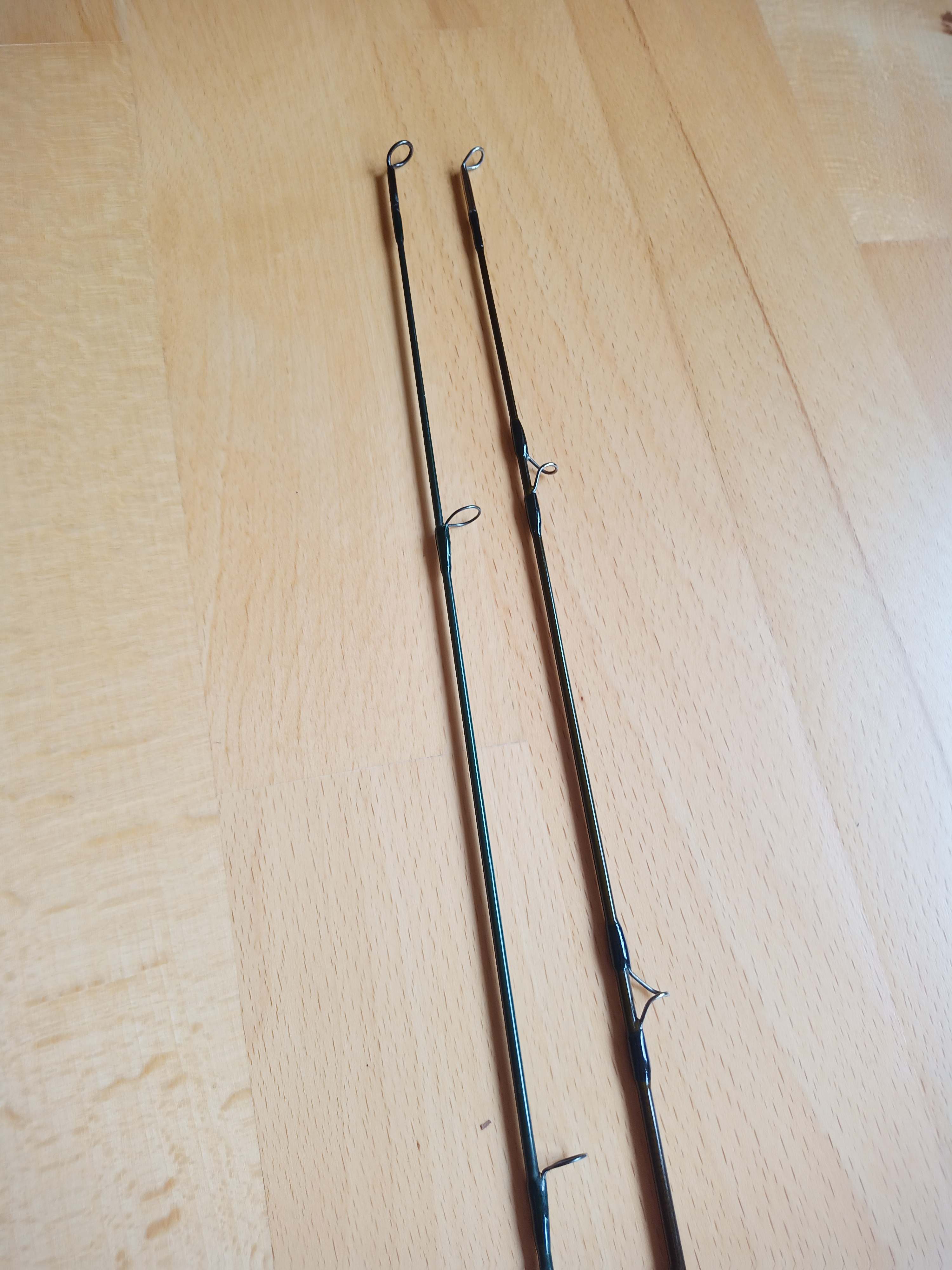Eine Offenbarung war da der Hinweis, dass meine damalige Lieblingsmarke Sage bei unterschiedlichen Ruten z.T. das gleiche Konzept fährt. Da wird bei den oberen Teilen ein Ring auf den Überschub gebunden und die anderen dazwischen (einigermaßen) gleichmäßig verteilt.