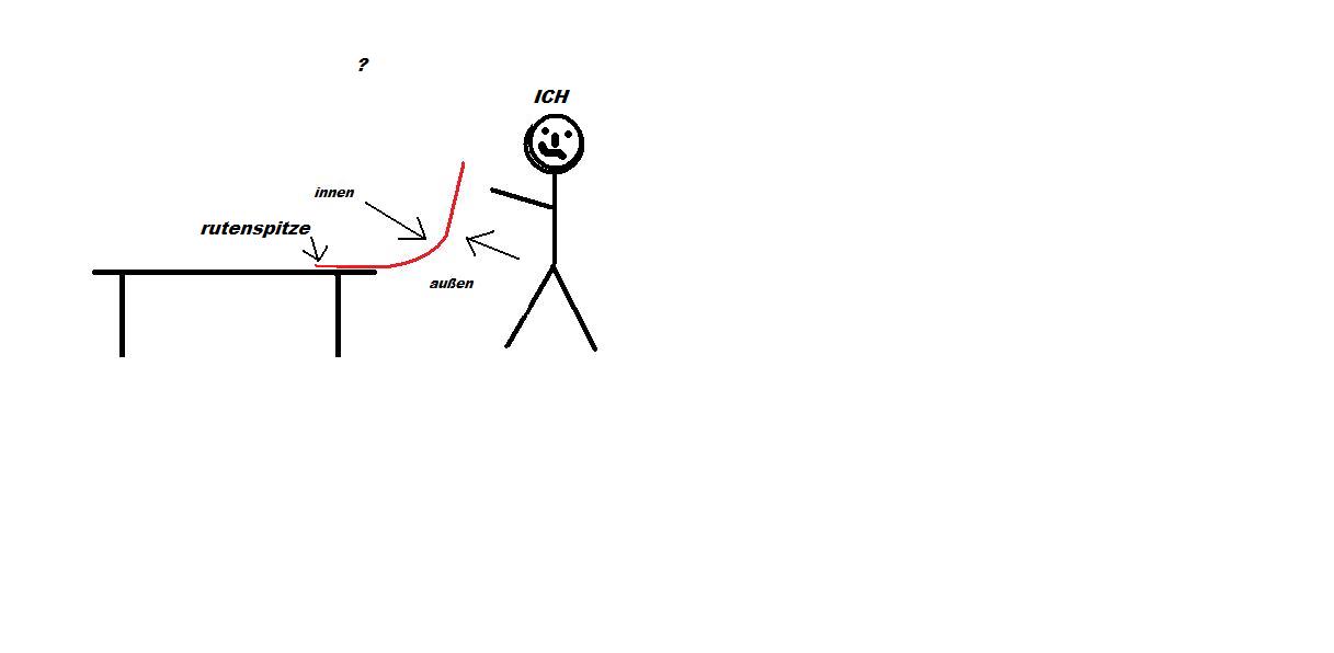 also ich lege die rutenspitze auf den tisch und fange an zu drehen irgendwann fängt dann der blank an zu springen und jetzt war halt meine frage oder ist meine frage wo kommen dann die ringe hin innen oder außen verstehst was ich meine !!!