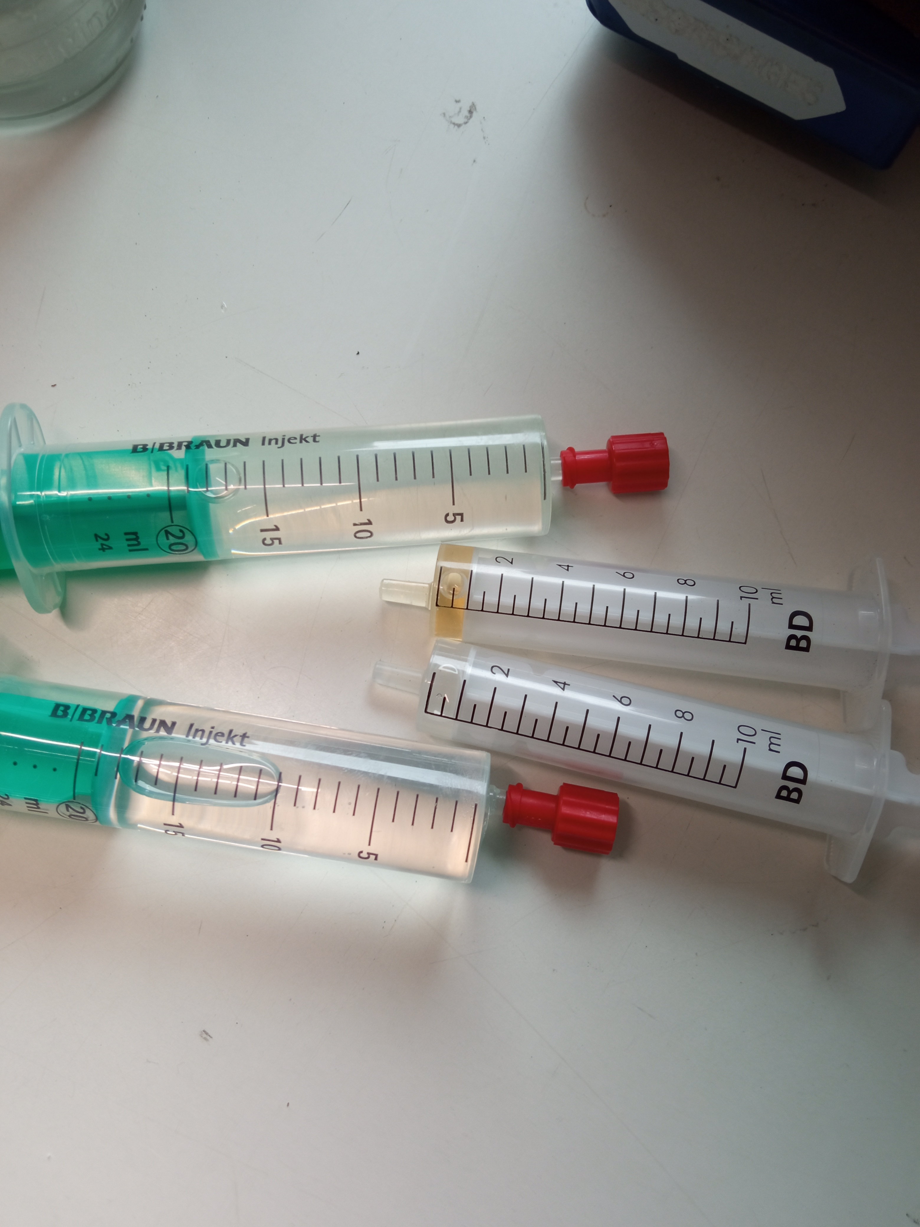 In den kleinen Spritzen ist ein FlexCoat High Build drin der ca. 15 Monate alt ist.