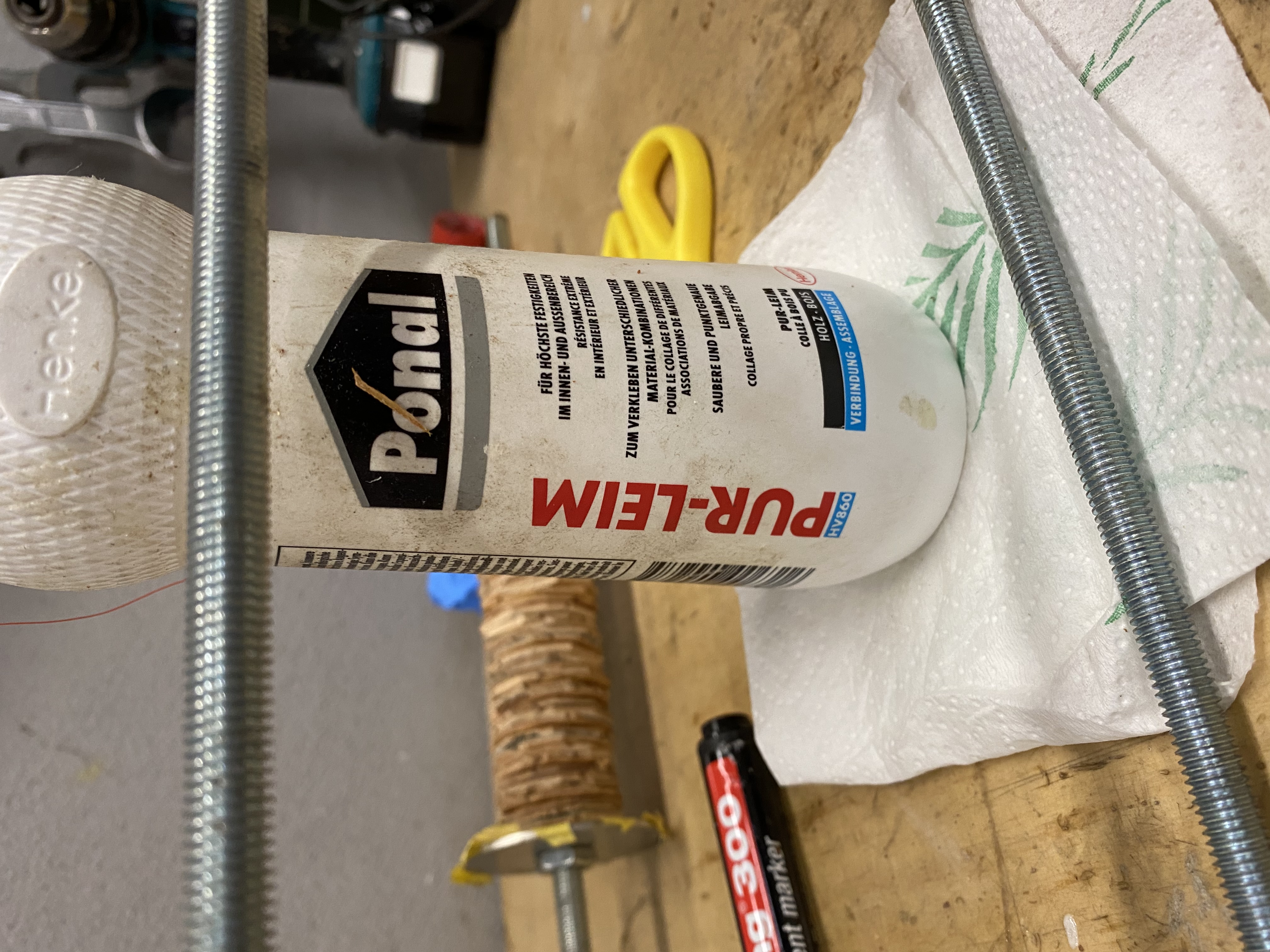 ich hab mal den aufschäumenden PU-Rutenbaukleber und als der leer war den blauen Ponal Weißleim benutzt. Ging beides, war mit dem PU aber insgesamt zufriedener was die Verarbeitung anging, daher hab ich zuletzt auch den Ponal PUR-Leim gekauft, den Moritz oben schon gezeigt hat.