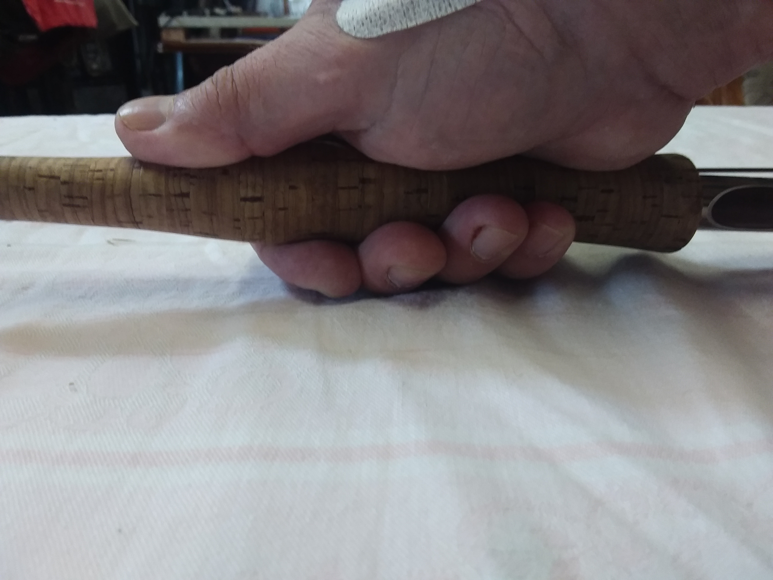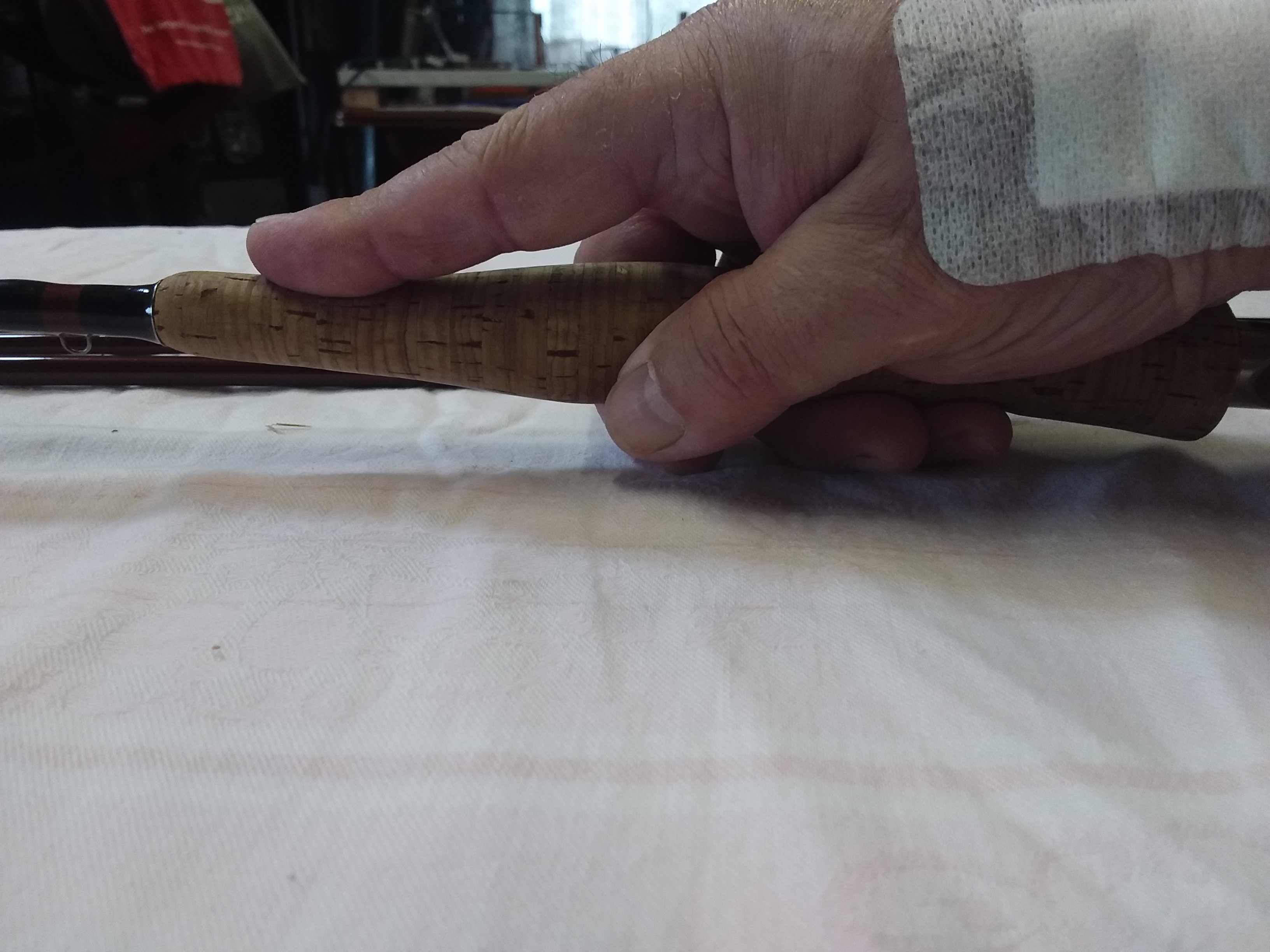Hier die Seitenansicht des englischen Maniform-Griffes auf einer #5 Rute.