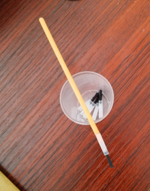 Holzstäbchen: Wie bei Rene‘. Zum Anmischen von Lack benutze ich nur noch Plastikstäbchen.