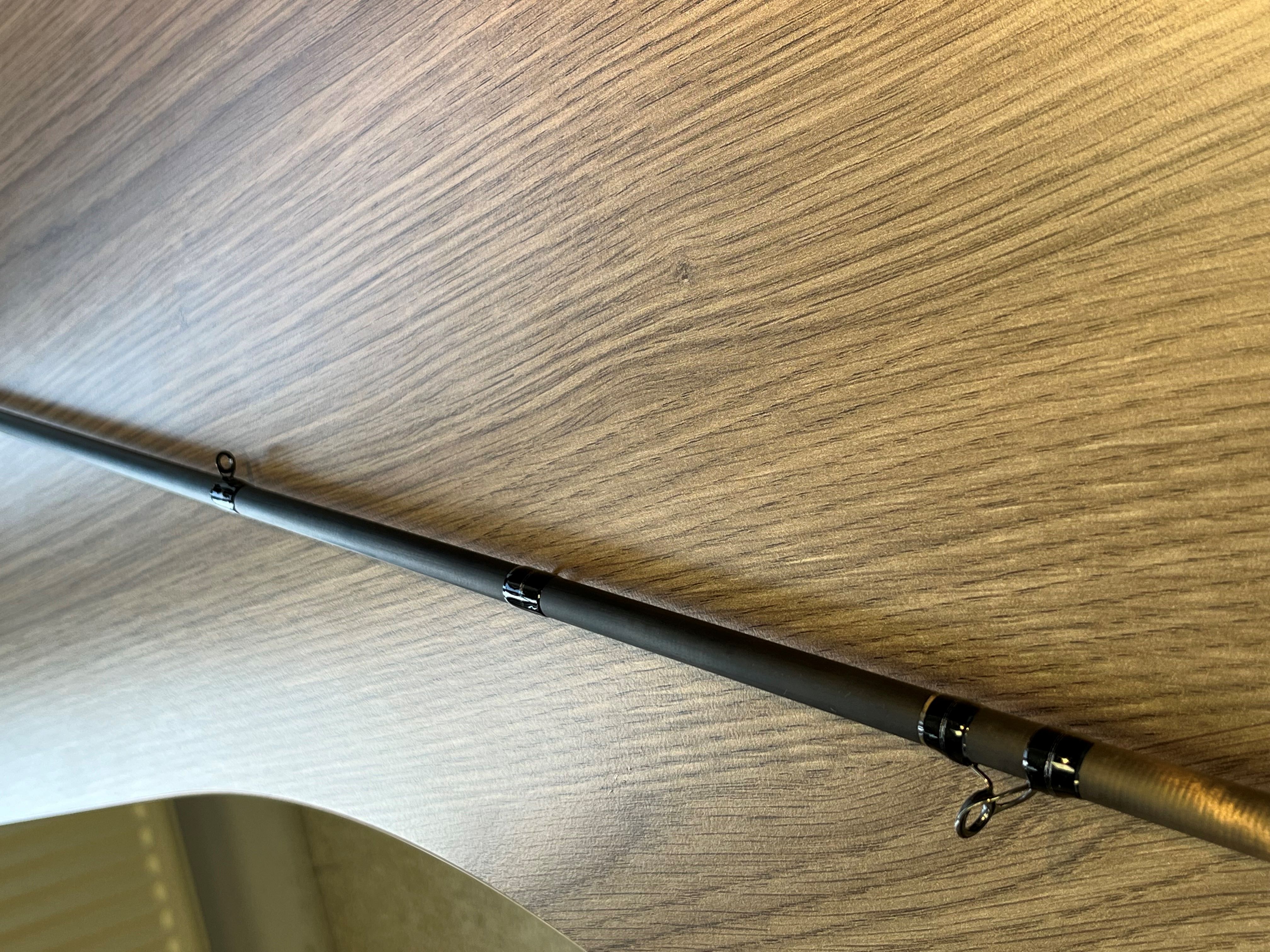 Die Rute ist wie gewohnt sehr schnell, ist aber mit einer schlanken Spitze ausgestattet, die etwas nachgiebig ist, ohne, dass sie weich ist. 30/40cm nach der Spitze fängt eine mega Backbone an. Gerade, wenn man beim Kajakfischen den Anhieb nur aus dem Unterarm setzen muss, ist das sehr hilfreich. Besonders bei großen Ködern. Hier die Blankparameter: