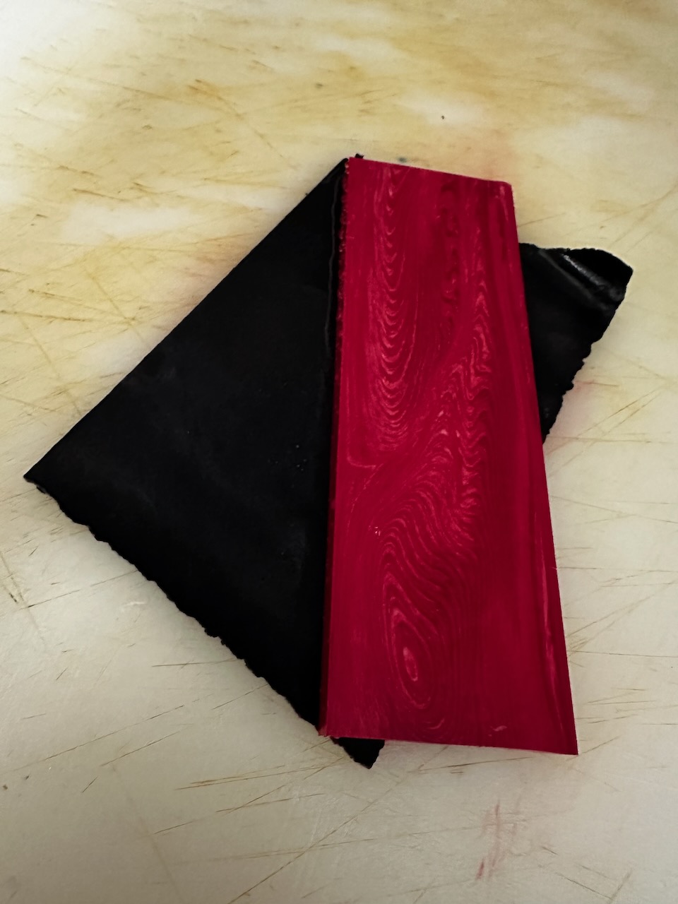 Ich hatte mal was ganz ähnliches zusammengklebt, mit einer blauen Juma Platte in der Mitte, dann rechts und links je eine Lage Hartpapier und dann rechts und links eine Platte Acryl in Perlmut mit schwarzen Akzenten. Der Rohling liegt bei mir auch schon ewig vergessen rum und sollte mal ein Splitgriff werden. Da könnte ich glatt mal drangehen, wenn es endlich kälter wird.