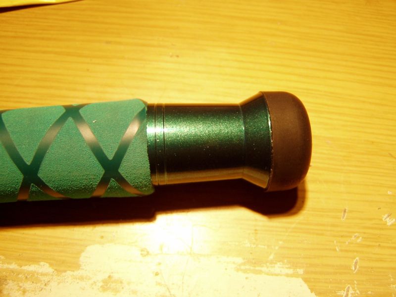 Unter dem Rollenhalter würde ich max. die Hälfte vom Kork nehmen, aber konisch zuschleifen (ähnlich wie dein Metallstück über dem Rollenhalter nur nicht ganz so steil). Die Endkappe gefällt mir weniger - ist doch ne zarte Rute wobei sie als Gegengewicht wegen der Ballance passen würde. Mein Vorschlag wäre hier ein Stück Kork in Tropfenform, also recht dünn anfangen und zum Ende hin abrunden. In das Loch vom Kork würde ich auch ein Stück Kork einpassen damit er von hinten verschlossen ist - ohne Endkappe.