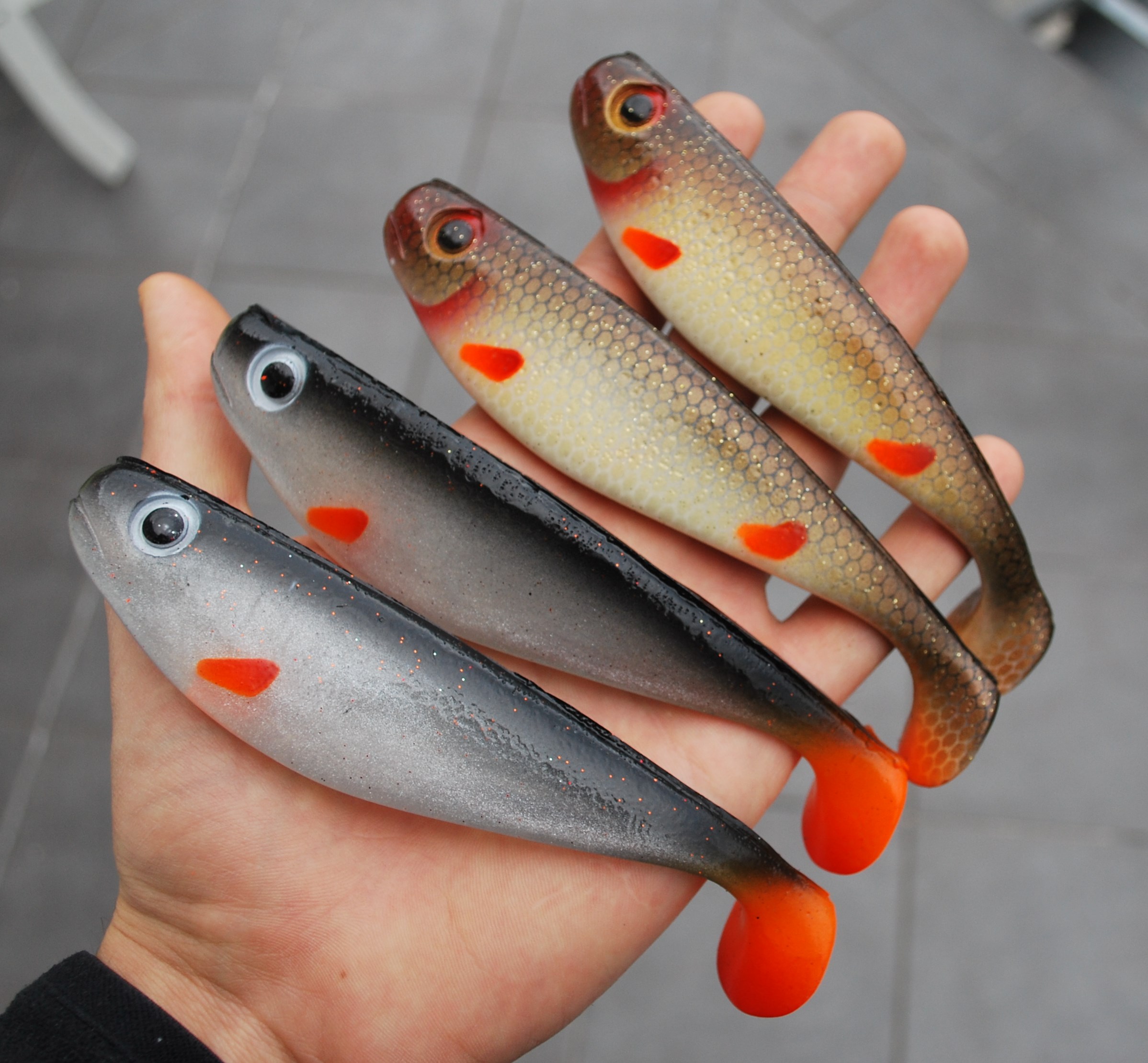 zu den ködern: die farben sind einmalig!!!! man sieht, dass sie von hand gegossen werden, nicht 100% akkurat, unikate halt!