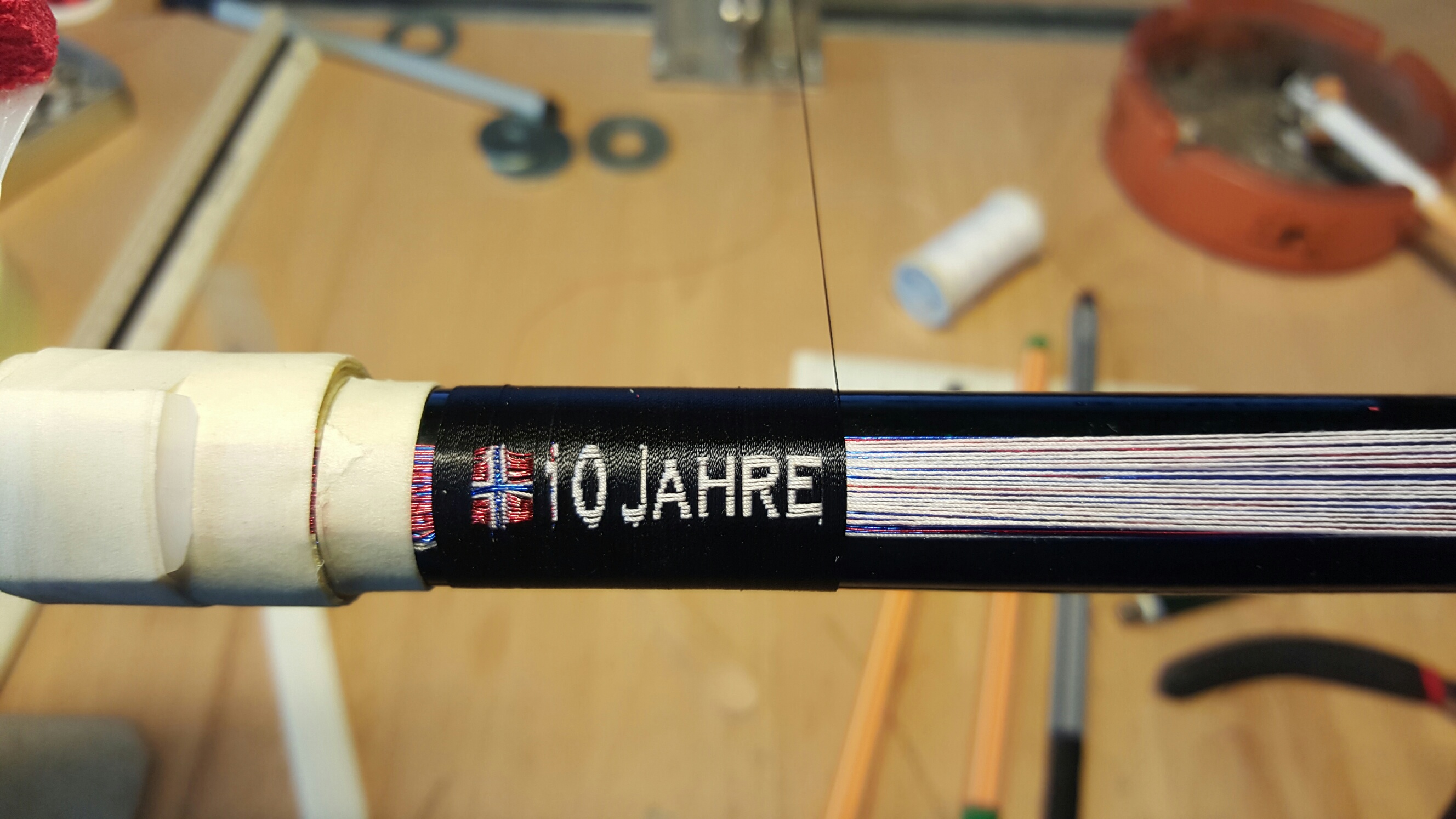Ich bin nur Weber - Laie, aber ich hätte die Fäden der Flagge nach dem Abbinden gekappt, stelle ich mir für den Rest der Wicklung angenehmer vor und die "1" wäre nicht farbkontaminiert.